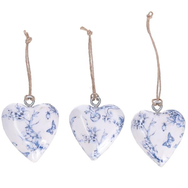 3D Herzen Holz Motivdruck in der Farbe Weiss Blau mit Öse und Hänger.