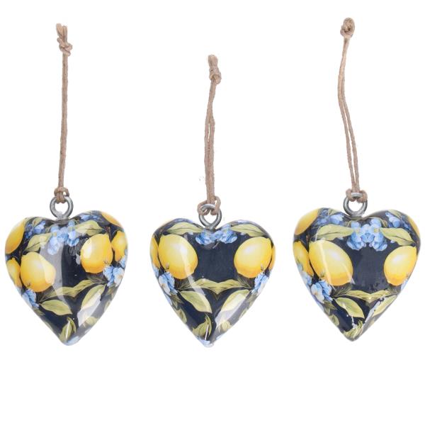 Herzen aus Holz, 3D, Zitronen, Blüten, 3 Stück
