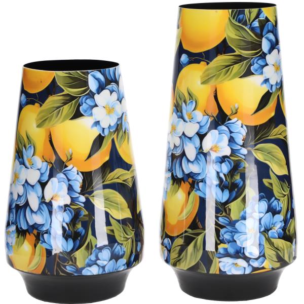 Vase Metall emailliert, Motiv Zitrone und Blüten, 37cm