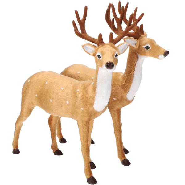 Zwei dekorative Hirschfiguren stehend mit Kunstfell im ansprechenden Braun Weiss und natürlicher Ausstrahlung.