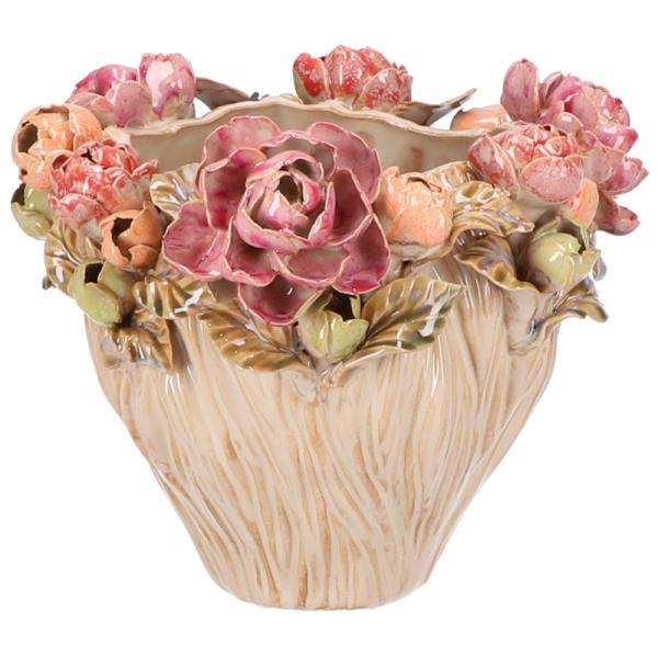 Topfvase handgefertigt verziert mit Blumen aus glasierten Porzellan. Ein Blickfang für jedem Raum. Detailreiche Gestaltung und hochwertige Verarbeitung mit einer lebendigen Ausstrahlung.