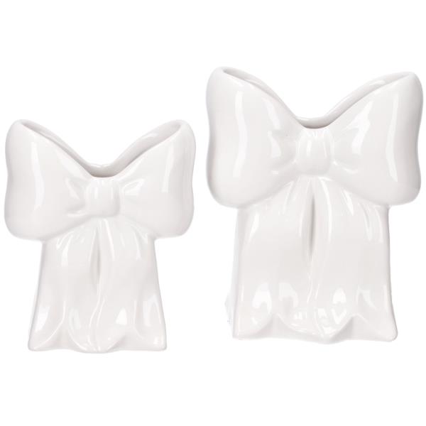 Schleifen Vase aus Porzellan in weiss elegantes Design. Ideal für den Einsatz in der Frühlingssaison.