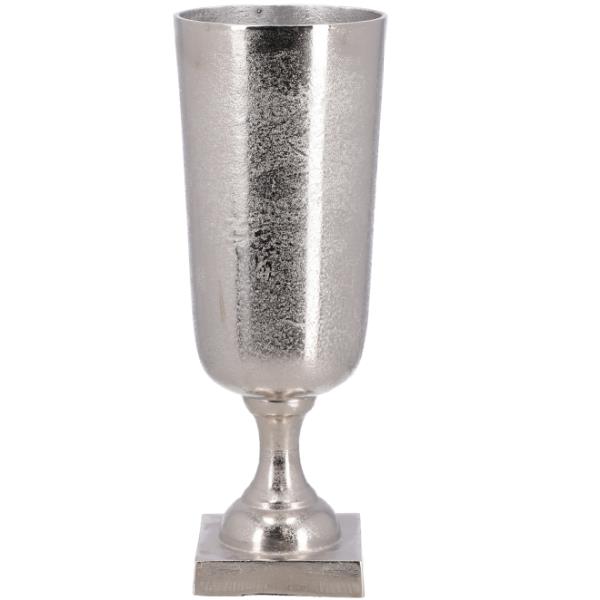 Silberne Pokalvase aus Metall, Aluguss Style. Elegantes Design mit moderner Note.