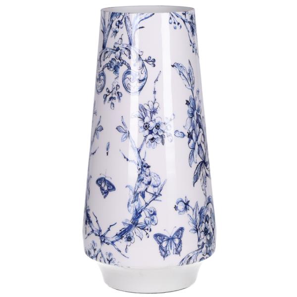 Vase aus Metall, Motivdruck Weiss Blau, 37cm