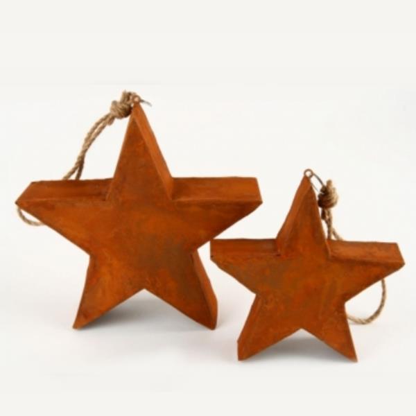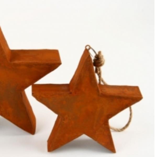 Blech Weihnachtssterne rost, Strick. 13cm. 6 Stück