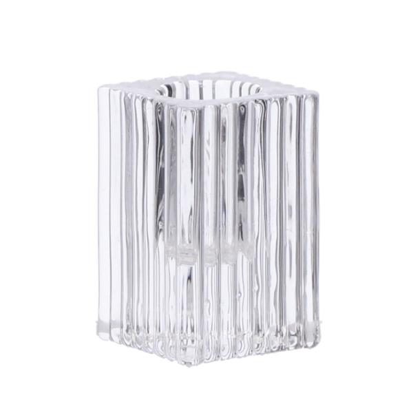 Eckiger Kerzenhalter für Spitz- und Stabkerzen bis Durchmesser 22mm geeignet. Aus klarem Glas mit Rillenstruktur gefertigt, überzeugt durch das moderne Design.
