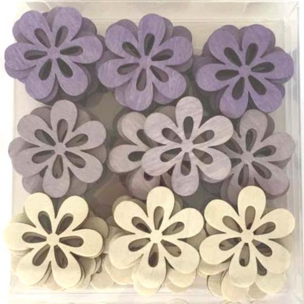 Blumen Holz Streudekoration, Flieder Weiss Töne, 72 Stück