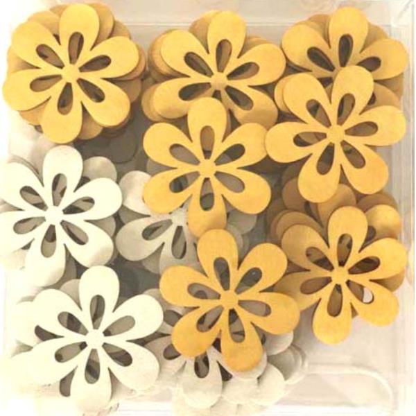 Flache Blüten Holz Gelb Weiß, 72 Stück